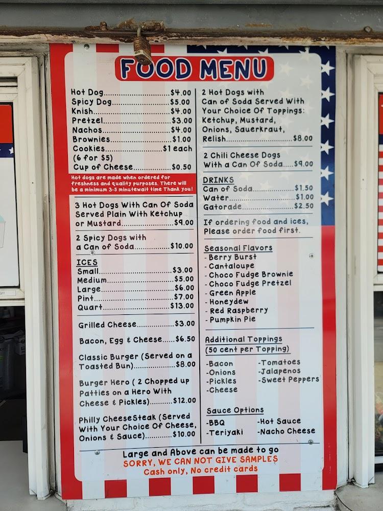 In addition to the ice options, guests can enjoy satisfying hot dogs, pretzels, and knishes. Each item is prepared with care, resulting in a homemade quality that patrons appreciate. The classic bacon egg and cheese and Philly cheesesteak round out the lunch offerings beautifully.